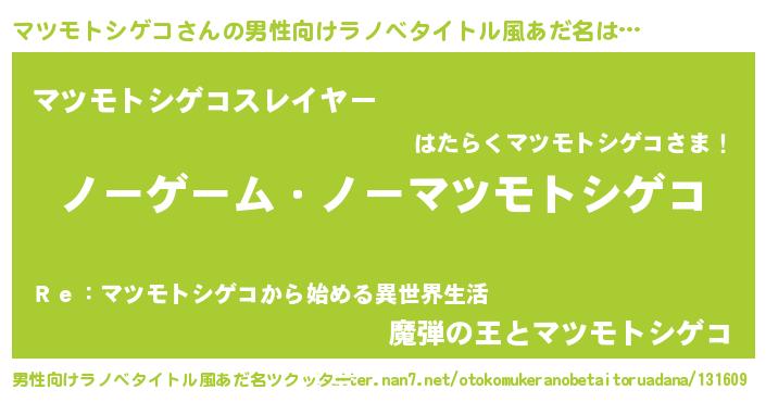 | ヒーロー風カッコイイあだ名 | 『天空の使者マツモトシゲコ』 |