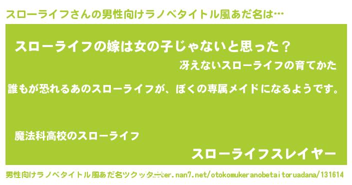 | 意味不明あだ名 | 『永久保存スローライフ』 |