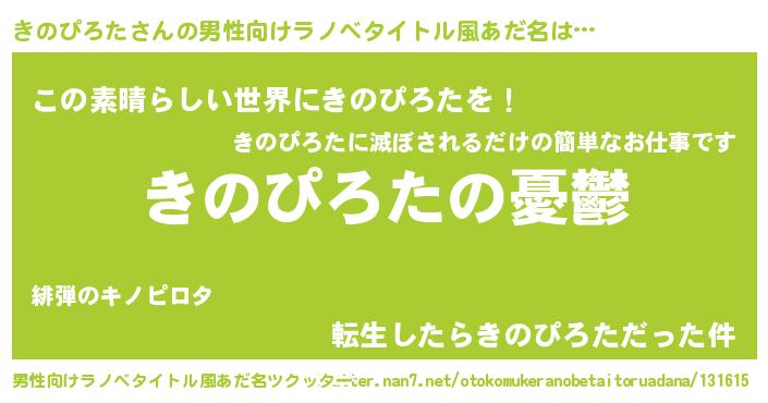 | 女子向けラノベタイトル風あだ名 | 『(仮)きのぴろたのやんごとなき事情』 |
