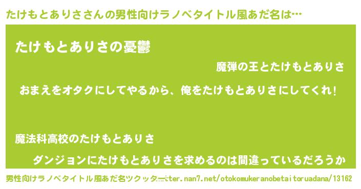 | 胡散臭い通販商品みたいなあだ名 | 『お金では代えられない隕石のかけら…その名も「たけもとありさ」』 |