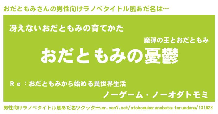 | 女子向けラノベタイトル風あだ名 | 『おだともみ姫と円卓の騎士』 |