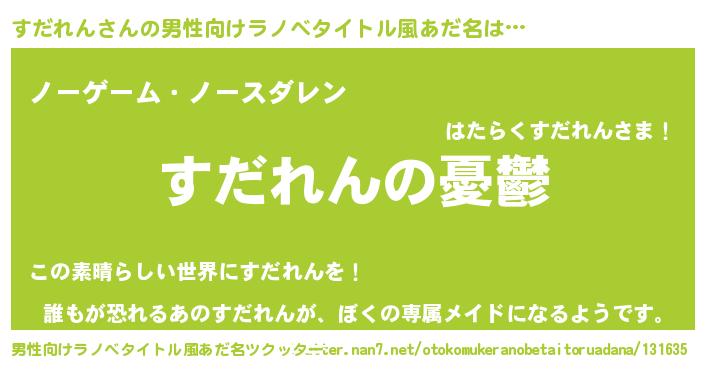 | 女子向けラノベタイトル風あだ名 | 『(仮)すだれんのやんごとなき事情』 |
