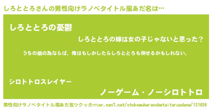 | 女子向けラノベタイトル風あだ名 | 『しろととろ伯爵の花嫁』 |