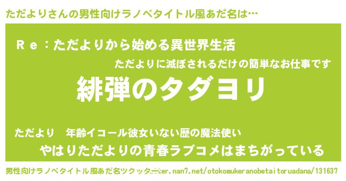 | ヒーロー風カッコイイあだ名 | 『超時空戦士タダヨリ』『ネオタダヨリ』 |