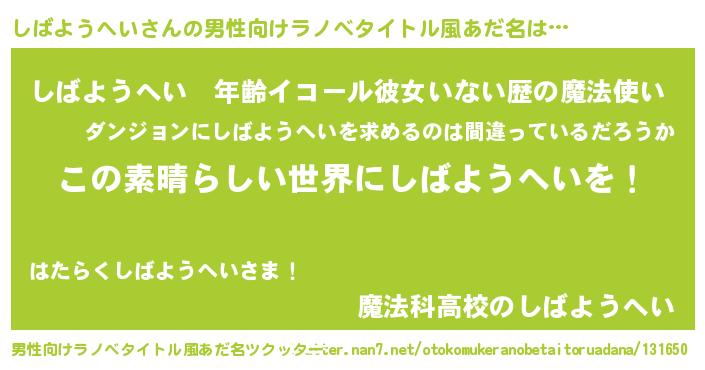 | 意味不明あだ名 | 『住所不定無職しばようへい(40歳)』 |