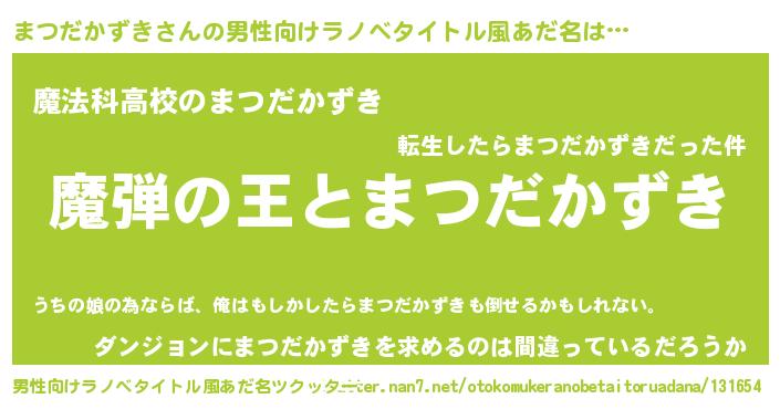 | 意味不明あだ名 | 『住所不定無職まつだかずき(56歳)』 |