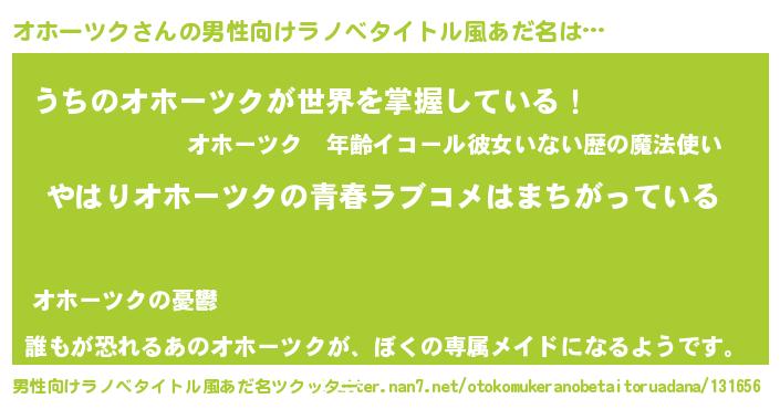 | 女子向けラノベタイトル風あだ名 | 『オホーツクの雑貨屋さん』 |