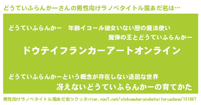 | 胡散臭い通販商品みたいなあだ名 | 『億万長者になれる水晶球…その名も「どうていふらんかー」』 |
