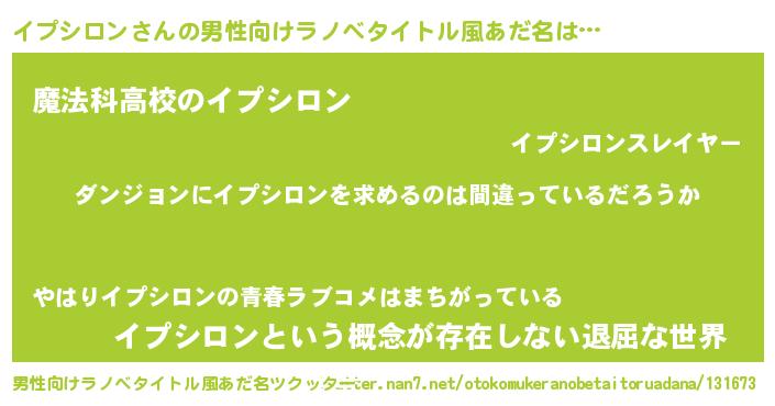 イプシロンさんの男性向けラノベタイトル風あだ名をツクッター!