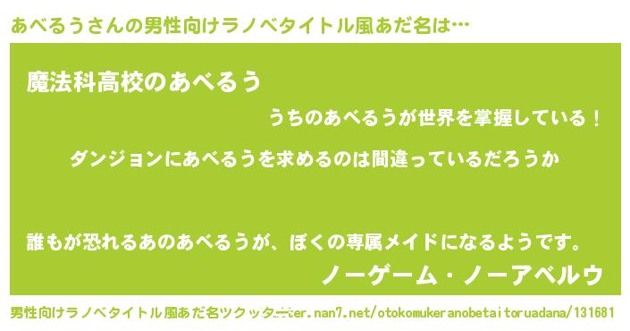| 胡散臭い通販商品みたいなあだ名 | 『信頼と実績のペンダント…その名も「あべるう」』 |