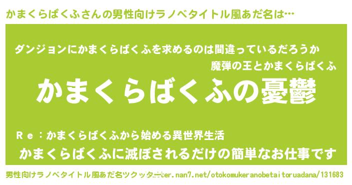 | 女子向けラノベタイトル風あだ名 | 『かまくらばくふ姫と円卓の騎士』 |
