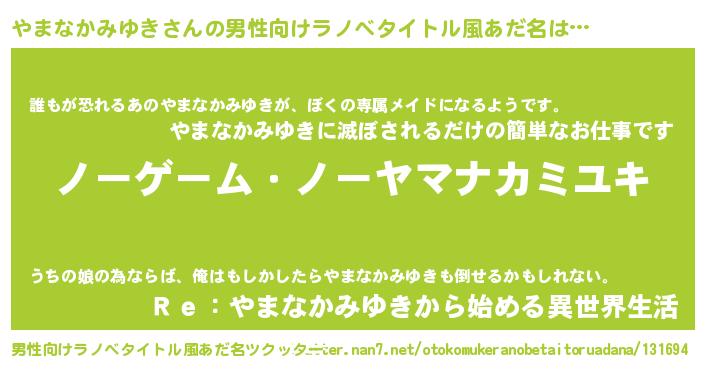 | 胡散臭い通販商品みたいなあだ名 | 『モンドセレクションを受賞したイリジウム磁石…その名も「やまなかみゆき」』 |