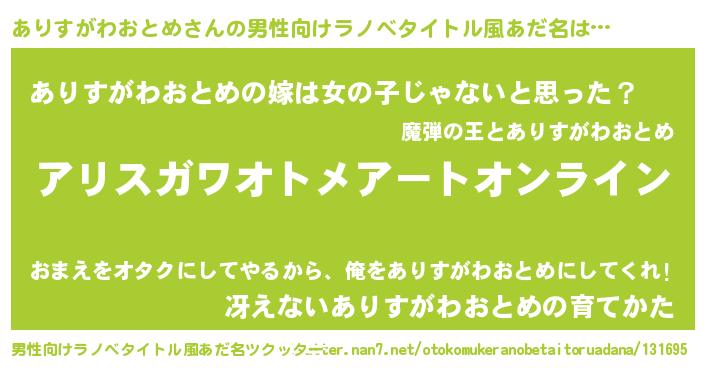 | 肩書あだ名 | 『ありすがわおとめ店長』 |