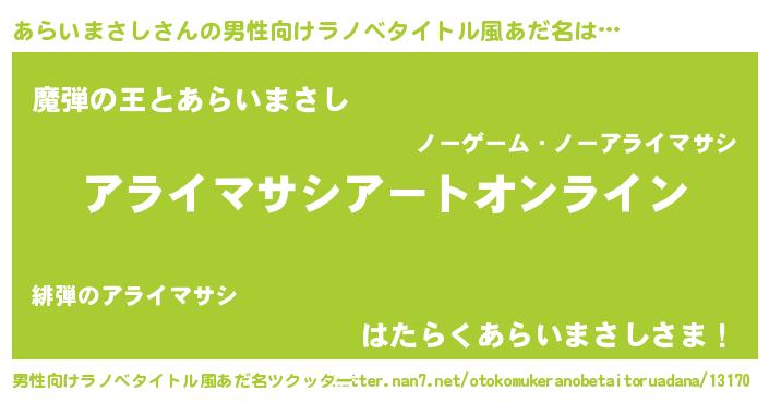 | ヒーロー風カッコイイあだ名 | 『スーパーアライマサシ』『仮面アラダー』 |