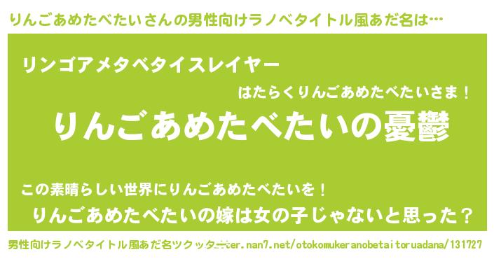 女子向けラノベタイトル風あだ名 | 『(仮)りんごあめたべたいのやんごとなき事情』 |