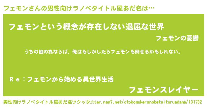 | ファンタジー風あだ名 | 『エターナルフェモンー』『フェフェル』 |