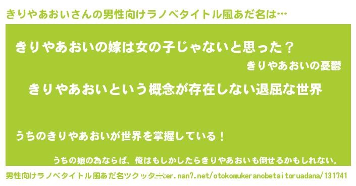 | 女子向けラノベタイトル風あだ名 | 『異世界で失敗しない100のきりやあおい』 |