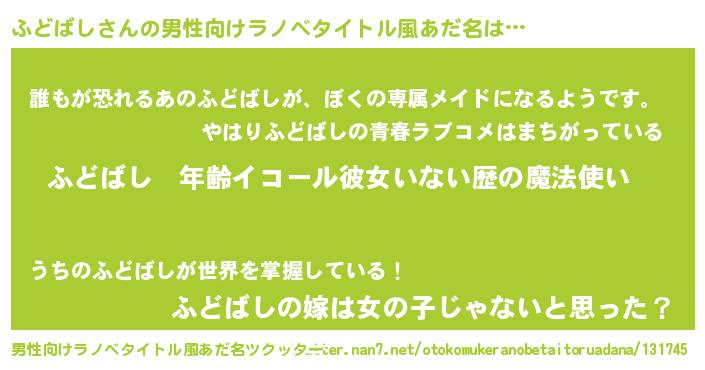 | 女子向けラノベタイトル風あだ名 | 『ふどばしの玉の輿計画!』 |