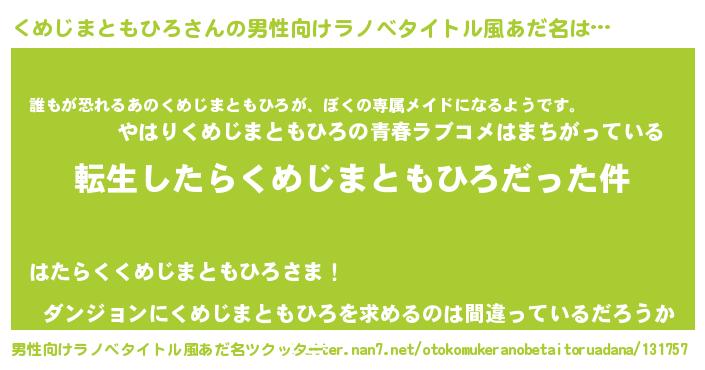 | ヘコむあだ名 | 『くめじまともひろ(小並感)』『くめを』 |