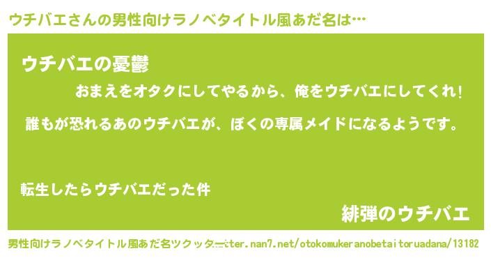 | 胡散臭い通販商品みたいなあだ名 | 『来世でも幸せになれる健康食品…その名も「ウチバエ」』 |