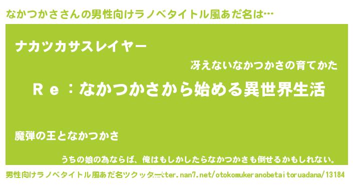 | 意味不明あだ名 | 『自称なかつかさ』『永久保存なかつかさ』 |
