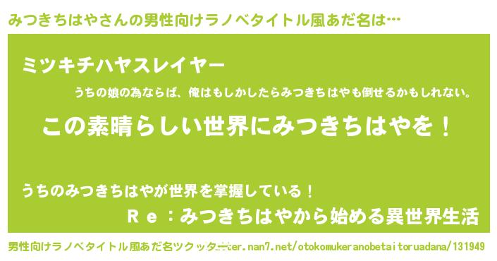 | 意味不明あだ名 | 『住所不定無職みつきちはや(91歳)』 |