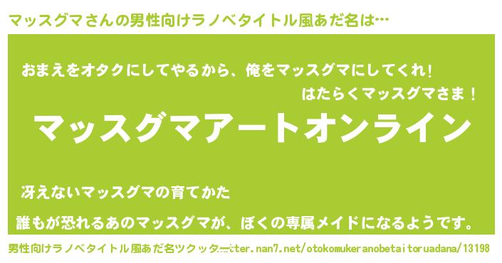 | 胡散臭い通販商品みたいなあだ名 | 『億万長者になれるブレスレット…その名も「マッスグマ」』 |