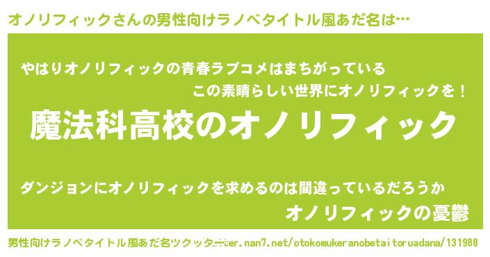 | 女子向けラノベタイトル風あだ名 | 『オノリフィックアンティーク』 |