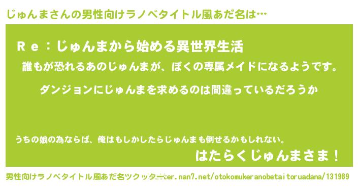 | 女子向けラノベタイトル風あだ名 | 『じゅんまは平凡を望む』 |