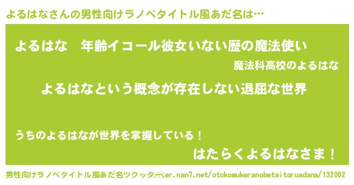 | 意味不明あだ名 | 『永久保存よるはな』『自称よるはな』 |