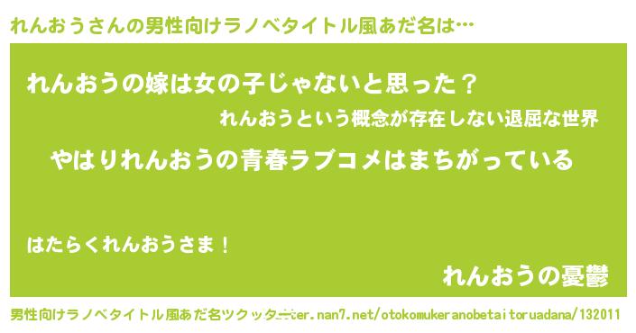| 女子向けラノベタイトル風あだ名 | 『れんおうの雑貨屋さん』 |