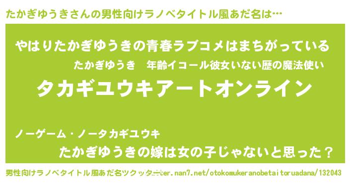 | 女子向けラノベタイトル風あだ名 | 『たかぎゆうき姫と円卓の騎士』 |