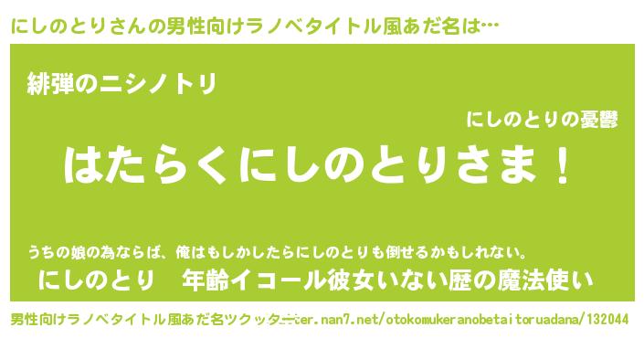 | 胡散臭い通販商品みたいなあだ名 | 『モテモテ間違いなしブレスレット…その名も「にしのとり」』 |