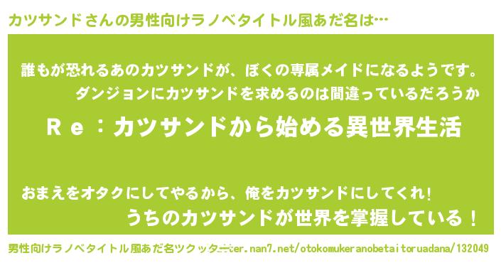 | 女子向けラノベタイトル風あだ名 | 『闇のカツサンド』 |