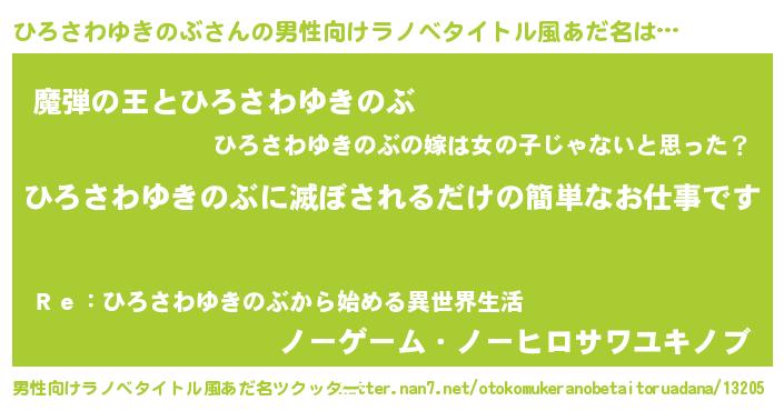 | 女子向けラノベタイトル風あだ名 | 『横柄ひろさわゆきのぶと宰相陛下』 |
