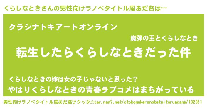 | 胡散臭い通販商品みたいなあだ名 | 『モテモテ間違いなし水晶球…その名も「くらしなとき」』 |