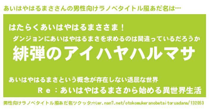 | 女子向けラノベタイトル風あだ名 | 『シンデレラあいはやはるまさ家の靴箱館』 |