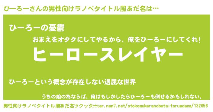 | 胡散臭い通販商品みたいなあだ名 | 『必ず成功する水晶球…その名も「ひーろー」』 |