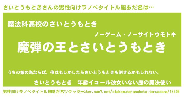 | 意味不明あだ名 | 『住所不定無職さいとうもとき(40歳)』 |