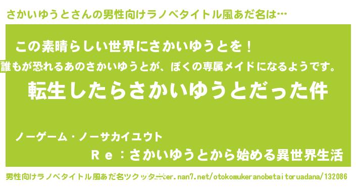 | ヒーロー風カッコイイあだ名 | 『仮面サカダー』『究極戦士サカイユウト』 |
