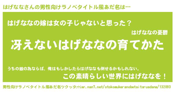 | 女子向けラノベタイトル風あだ名 | 『シンデレラはげなな家の靴箱館』 |