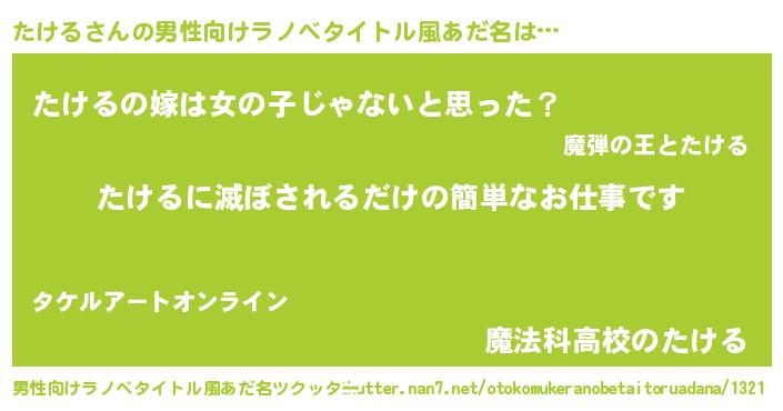 | 意味不明あだ名 | 『とにかく怪しいたける』『自称たける』 |