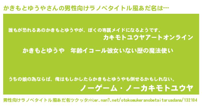 | 肩書あだ名 | 『かきもとゆうや上級大将』 |