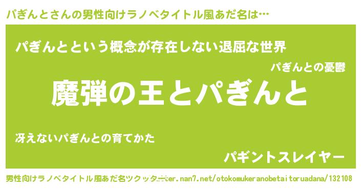 | 意味不明あだ名 | 『住所不定無職パぎんと(4歳)』 |