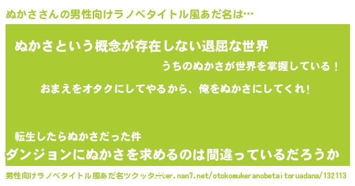 | ヘコむあだ名 | 『ぬかさ(苦笑)』『ぬかっ子』 |