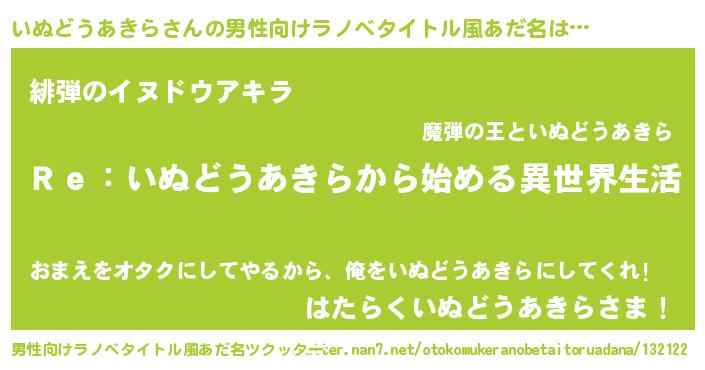 | 意味不明あだ名 | 『自称いぬどうあきら』 |