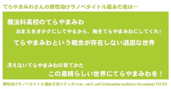 | 女子向けラノベタイトル風あだ名 | 『異世界で失敗しない100のてらやまみわ』 |