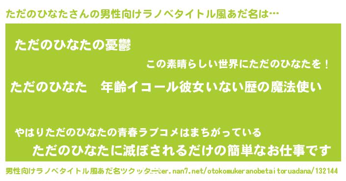 | 胡散臭い通販商品みたいなあだ名 | 『億万長者になれる霊験あらたかなお札…その名も「ただのひなた」』 |