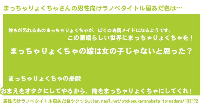 | 女子向けラノベタイトル風あだ名 | 『まっちゃりょくちゃ様がみてる』 |