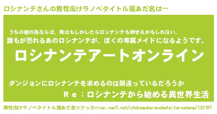 | 胡散臭い通販商品みたいなあだ名 | 『モテモテ間違いなし霊験あらたかなお札…その名も「ロシナンテ」』 |